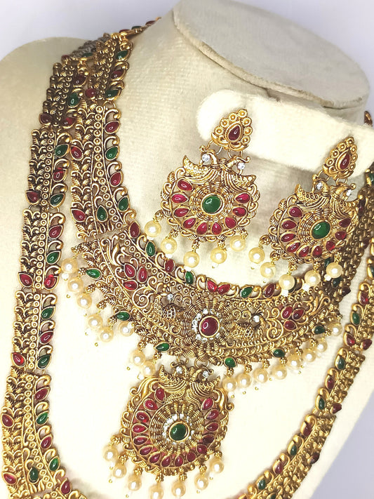 Stunning Antique Peacock round red beads Haram Set
